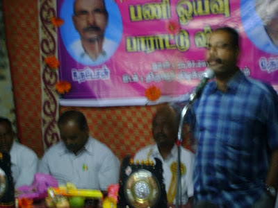 பதவியிலி ருந்து விலகி புதிய கோட்டச்செயலர் P4 தோழர் .v .தர்மலிங்கம் அவர்களை அடையாளம் காட்டி ஜனநாயக வழியிலே தேர்வாகிட அஞ்சல் மூன்றையும் சாட்சிக்கு அழைத்த காட்சி அவரது தொழிற் சங்கப்பணி க்கு ஜனநாயக மாண்புக்கு ,மரபுக்கு கட்டியம் கூறுவது போல் அமைந்தது . புதிய P4 கோட்டச்செயலர் தோழர்.v .தர்மலிங்கம் அவர்களுக்கு மனமார்ந்த வாழ்த்துக்களையும் ,பாராட்டுக்களையும் திருப்பூர் அஞ்சல் மூன்று தெரிவிக்கிறது .